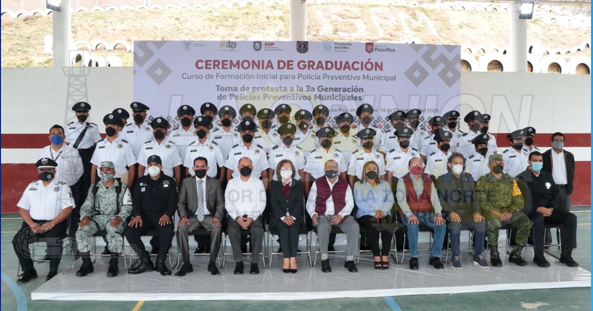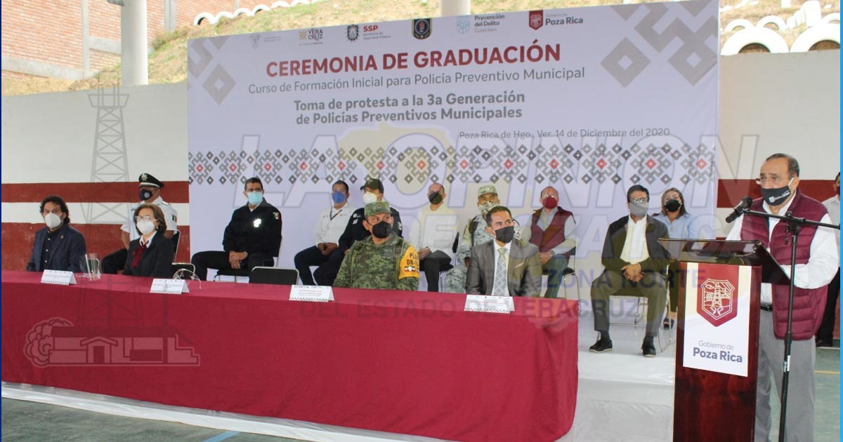 Müller Manuel Tabares Valdéz, en representación de Fernando Rodríguez Hernández, Director General de la Academia Metropolitana de Seguridad Pública de León, Guanajuato, encargada de la capacitación a los egresados del Curso de Formación Inicial para Policía Preventivo Municipal, agradeció la confianza depositada por el Gobierno de Poza Rica, para llevar a cabo estas acciones y agregó que para ser policía se requiere actitud, y el día de hoy “Estoy frente a las policías que harán ese cambio anhelado con su actitud”.
