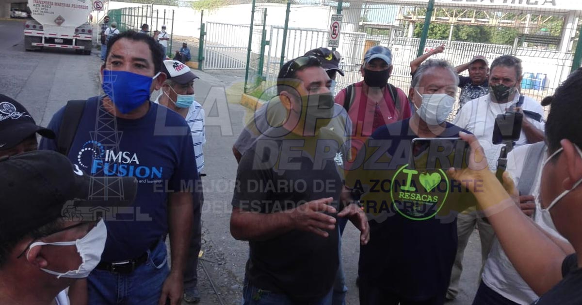 Poza Rica, Ver.- Obreros generales y especializados locales protestaron la mañana de este martes, para denunciar que son desplazados por compañías foráneas en trabajos de mantenimiento en el Complejo Procesador de Gas (CPG) de Pemex.