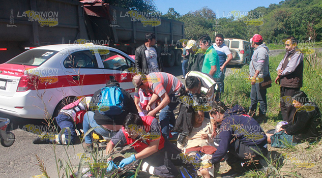 Tras el fuerte impacto resultó lesionado el chofer del taxi y los pasajeros Modesto Hernández Hernández de 60 años de edad y su esposa Alberta Hernández Hernández, de 50 años de edad, de la comunidad de Atexcal, perteneciente al municipio de Platón Sánchez.