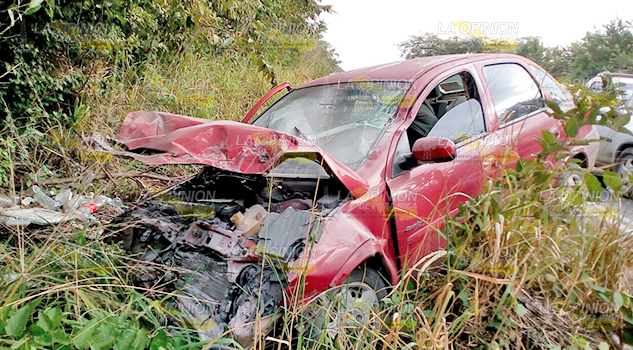 CERRO AZUL, VER.- Cuatro personas lesionadas y elevados daños materiales fue el saldo preliminar que dejo el choque entre un automóvil compacto y un tráiler que se suscitó en la tarde de este lunes sobre la carretera federal Tuxpan-Tampico, acudiendo personal de emergencia para trasladar a los heridos al hospital de la comunidad.