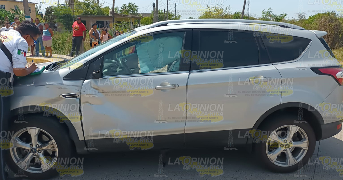 Tuxpan, Ver.- Conductor de una camioneta que intentaba dar una vuelta en U en el libramiento Adolfo López Mateos, de este puerto y derribó a una familia que viajaba en una moto y les provocó diversas lesiones por lo que tuvieron que ser hospitalizados.