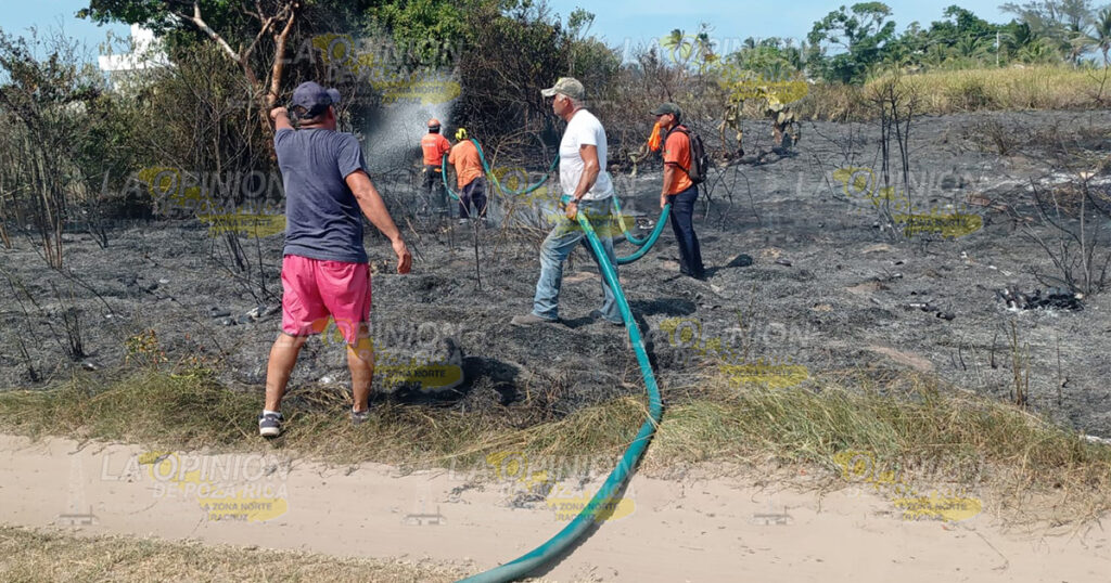 Tecolutla, Ver.- Elementos de diversas corporaciones de emergencia se movilizaron rápidamente ante los reportes de un dantesco incendio que estaba consumiendo todo a su paso y amenazaba con llegar hasta una gasolinera donde existía el riesgo de una explosión.