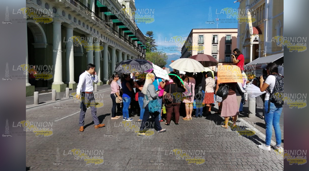 Cerrada a la circulación permanece la avenida Juan de la Luz Enríquez, en el primer cuadro, debido al cierre realizado por madres de El Castillo y El Tronconal, afectadas con la interrupción de recursos del Bienestar.