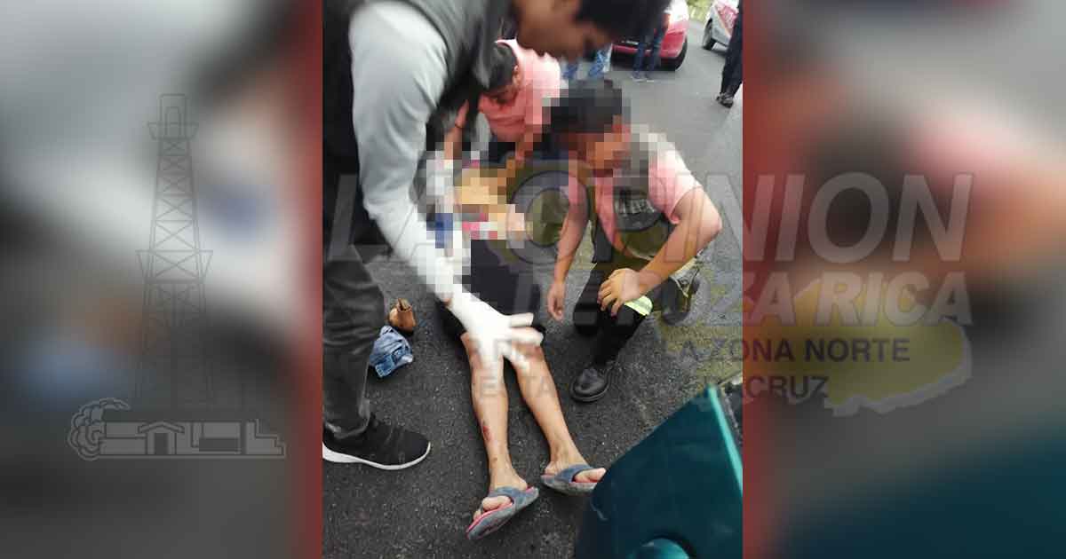 Papantla, Ver.- Los hechos sucedieron la tarde de este jueves, a la altura de la comunidad San Lorenzo y Anexos, hasta donde arribaron paramédicos de Protección Civil y del Escuadrón Nacional de Rescate, para atender a los tripulantes de la motocicleta.