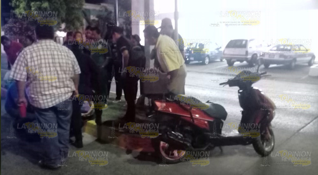 Familia que viajaba en una motocicleta resultó lesionada al sufrir un aparatoso accidente, una menor de 7 años que al momento de la caída se golpeó la cabeza tuvo que ser hospitalizada para su atención médica.