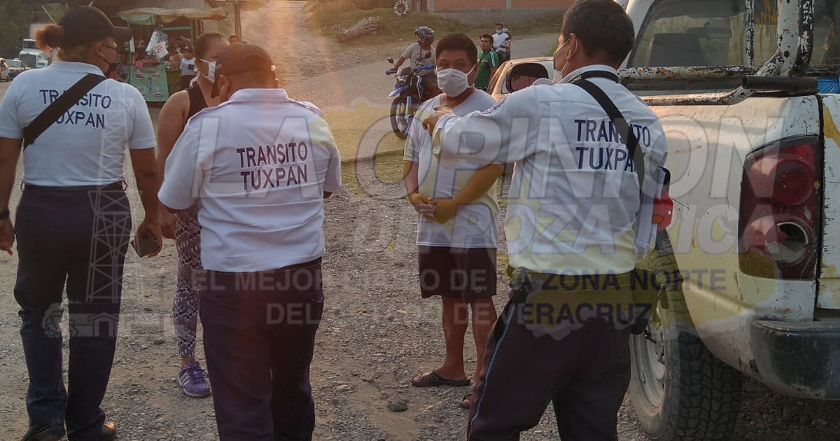 Tuxpan, Ver.- Joven motociclista que se habría atravesado al paso de un automóvil fue derribado pero por fortuna resultó ileso; es de mencionar que personal de Tránsito Municipal tomó conocimiento destacando que los involucrados fueron trasladados a las oficinas para que llegaran a un acuerdo.