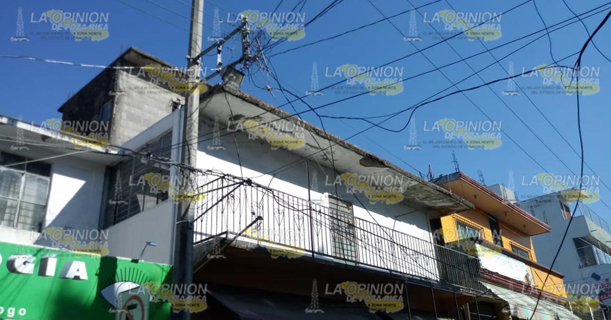 Tuxpan, Ver.- Nuevamente un operador de un camión de Limpia Publica, ocasionó daños a la mufa de un establecimiento y derribó cableado de servicios que se ubican en una céntrica avenida, de esta localidad.