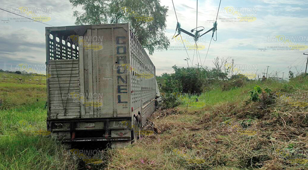 ÁLAMO, VER.- Un veloz tráiler que transitaba de norte a sur se salió de la carretera federal de manera abrupta, este viernes por la mañana; derribó un poste de energía eléctrica y con él, cables de alta tensión que suministran el fluido a la zona, lo que dejó sin luz a vasto sector de la localidad Chapopote Núñez y parte de la cabecera municipal.