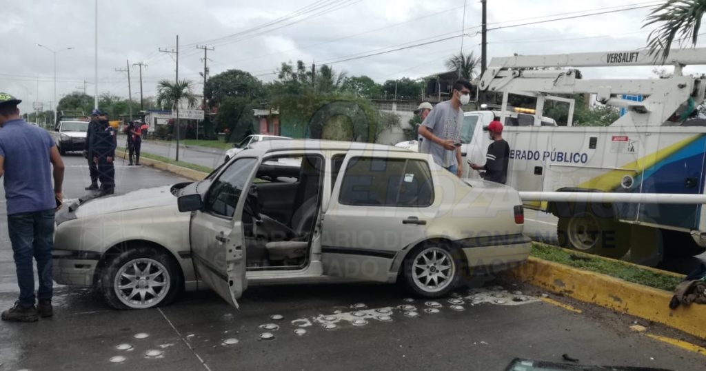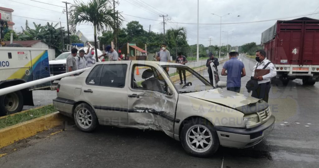Trascendió que, en el lugar, un automóvil Volkswagen Jetta, color arena, con placas de circulación NTH8226 del estado de México, el cual fue impactado en un poste de alumbrado público propiedad del Ayuntamiento, de esta localidad y derribado desde la base.