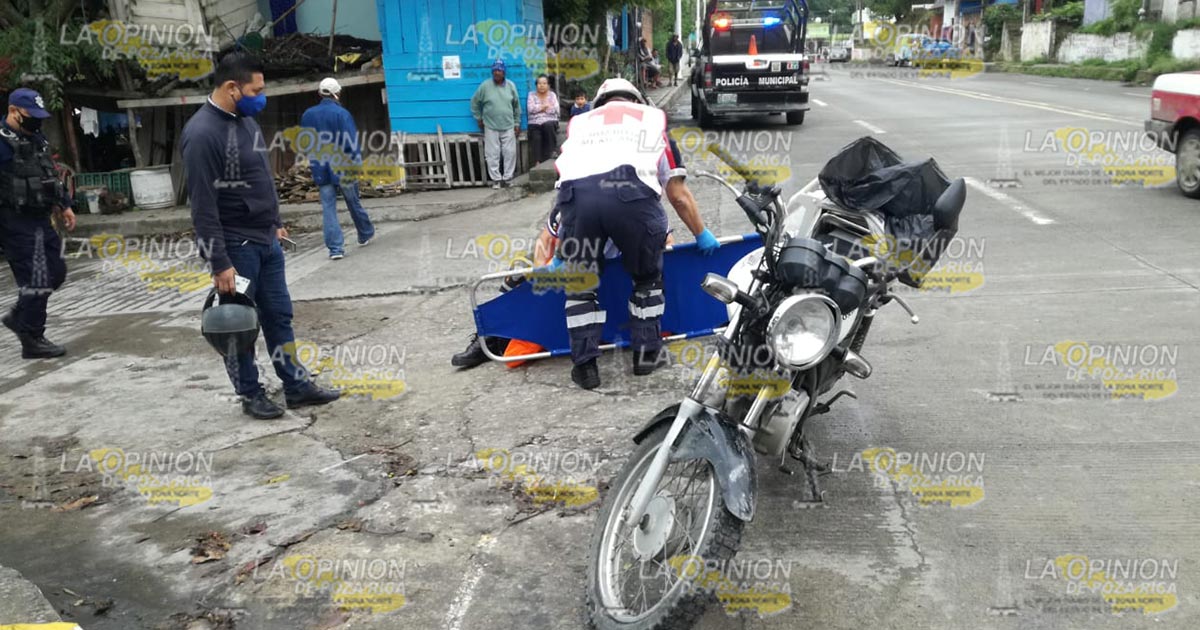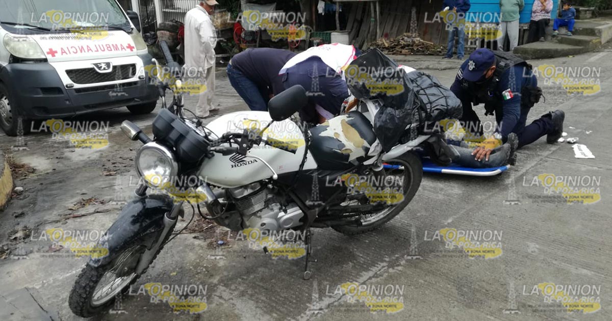 Tuxpan, Ver.- Trabajador del Heraldo de Tuxpan resultó con diversas contusiones en el cuerpo luego de que al manejar una motocicleta una camioneta lo impacto de forma intempestiva; paramédicos de Cruz Roja lo trasladaron hacia el Hospital Civil para su atención médica.