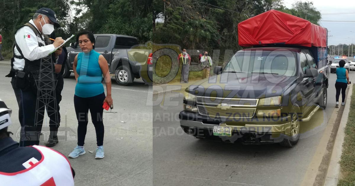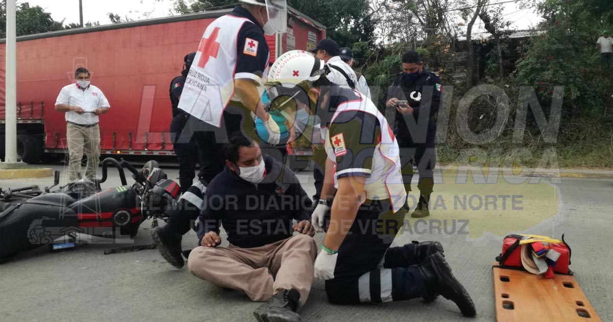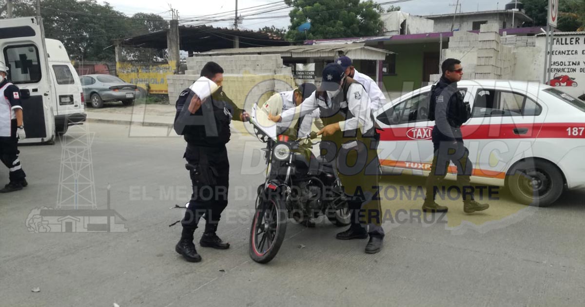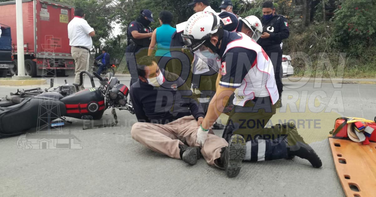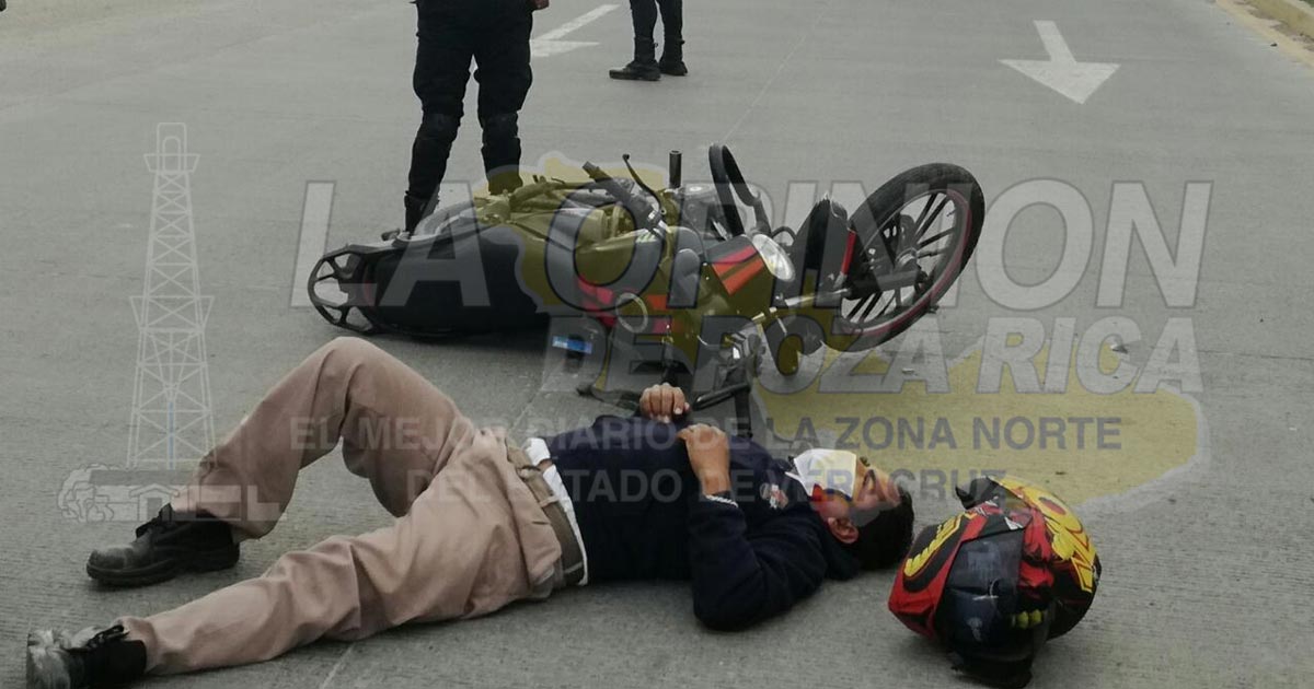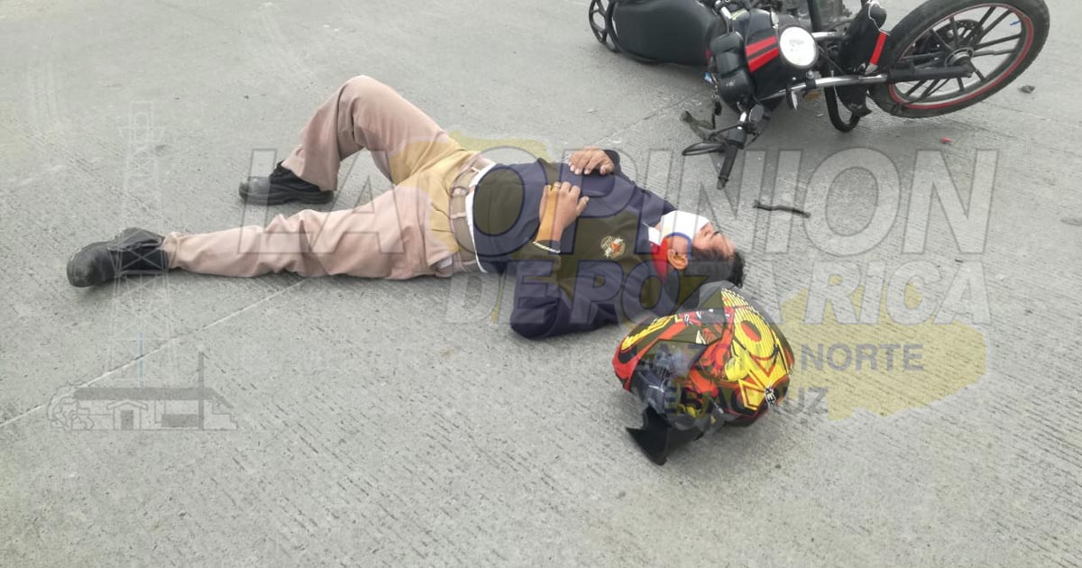 Tuxpan, Ver.- Empleado de grupo FEMSA que manejaba una motocicleta resultó lastimado al chocar con una camioneta cuya conductora daba una vuelta en U en el libramiento Adolfo López Mateos; autoridades de vialidad aseguraron las unidades y a la presunta responsable.