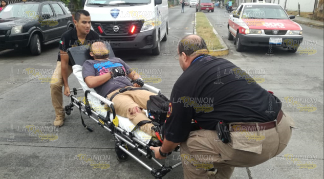 Tuxpan, Ver.- Un motociclista resultó con una herida en la pierna derecha al ser derribado por una pipa repartidora de agua, por lo que ameritó ser internado en el Hospital Civil “Emilio Alcázar” para su atención médica, mientras tanto, el presunto responsable fue asegurado por elementos de Tránsito Municipal.