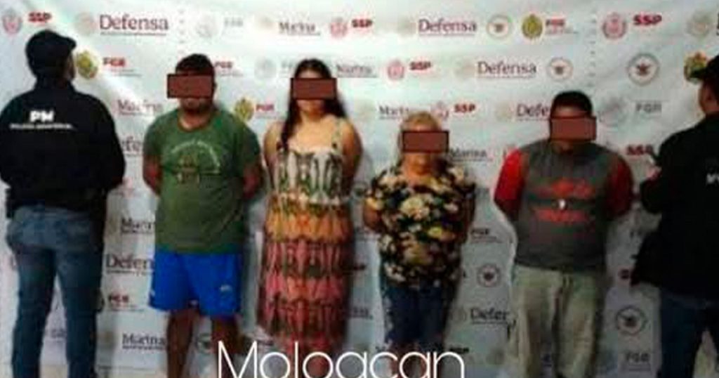 En Villa Cuichapa, Moloacán, las fuerzas conjuntas detuvieron a cinco individuos: Ismael “N”, Francisco Rosendo “N”, Scarlette Yamil “N”, Norma “N” y un menor. Entre los objetos asegurados figuran: