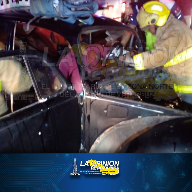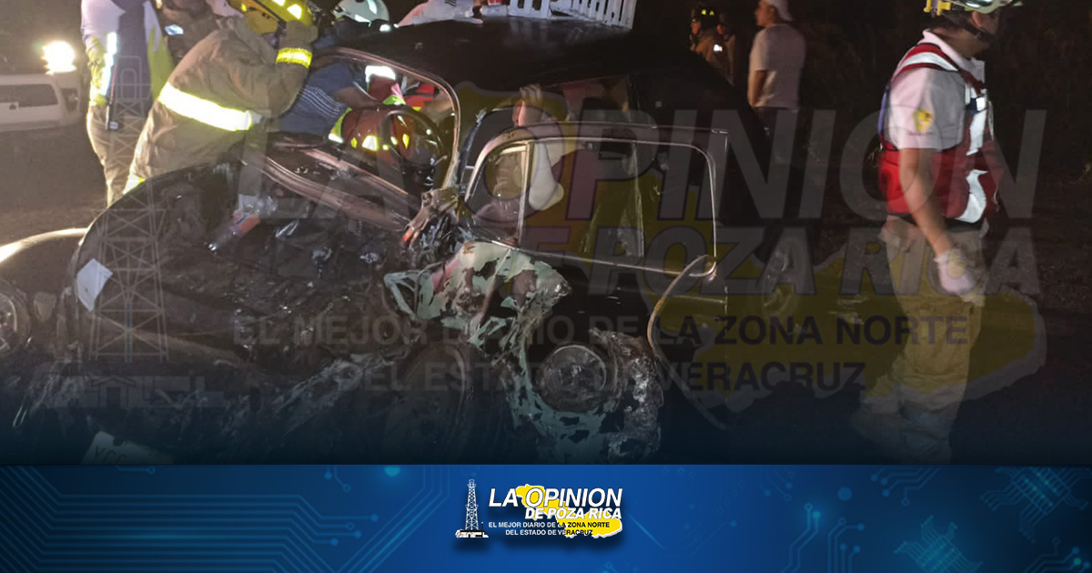 Tras el impacto, el Tsuru salió de la carretera y terminó volcado a un costado del pavimento, mientras que el Vocho permaneció a mitad de la carretera con el frente destrozado.