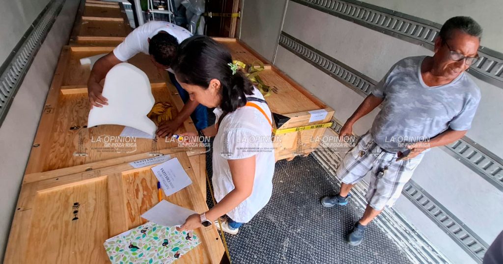 Tras el embalaje y sellado de las cajas, ayer fueron trasladadas las 3 piezas de referencia desde el Museo de Sitio de Castillo de Teayo, con la supervisión de Itzia Villicaña, comisaria del INAH, y el encargado de dicho museo, Víctor Manuel Zúñiga Vargas. El viaje inicial es a Ciudad de México, y luego a Italia.