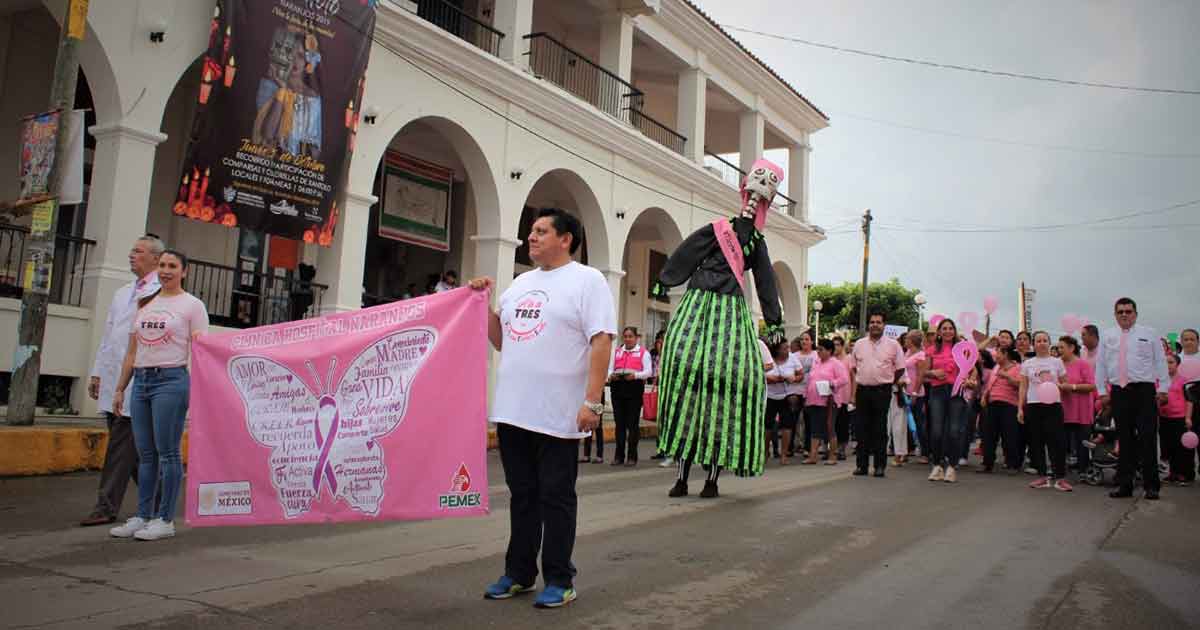 Naranjos, Ver.- Con el objetivo de promover la cultura del autocuidado en la población y la detección oportuna del cáncer de mama, la tarde del jueves 24 octubre, el alcalde Víctor Román Jiménez Rodríguez, autoridades municipales, educativas y de salud, participaron en el Desfile por la Semana de Lucha Contra el Cáncer de Mama 2019, organizado por la Clínica Hospital Pemex Naranjos.