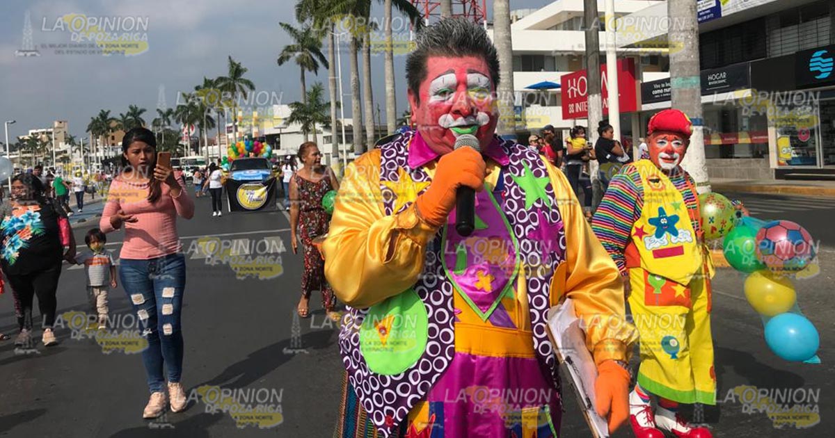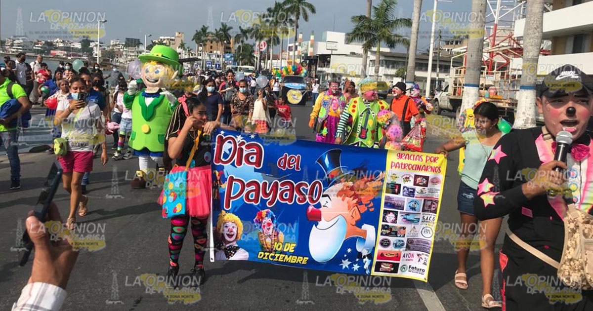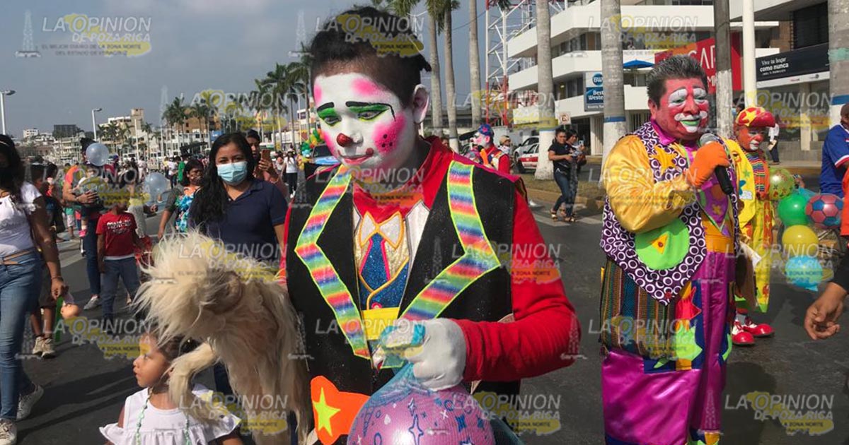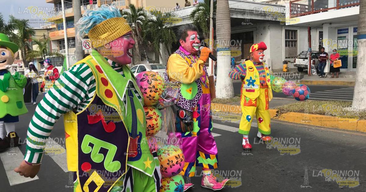 Tuxpan, Ver.- Tras larga ausencia debido a la emergencia sanitaria por la pandemia de Covid-19, payasos de la zona norte salieron a las calles este viernes para brindar a niños y adultos momentos de alegría, con un colorido desfile en la zona centro de la ciudad.