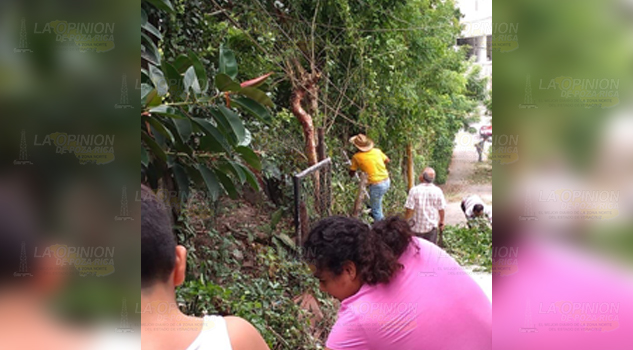 Papantla, Ver.- Con la finalidad de evitar alguna tragedia ante la inminente llegada de la temporada de huracanes, habitantes de la colonia Benito Juárez realizan el desrame de árboles en aquel sector de la ciudad, principalmente en aquellos que abrazan las líneas de la Comisión Federal Electricidad (CFE).