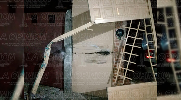 Tuxpan, Ver.- Automóvil que era manejado a exceso de velocidad fue estrellado contra el portón de una residencia provocando elevados daños materiales, el conductor emprendió la huida abandonando la unidad, oficiales de Tránsito aseguraron el vehículo.