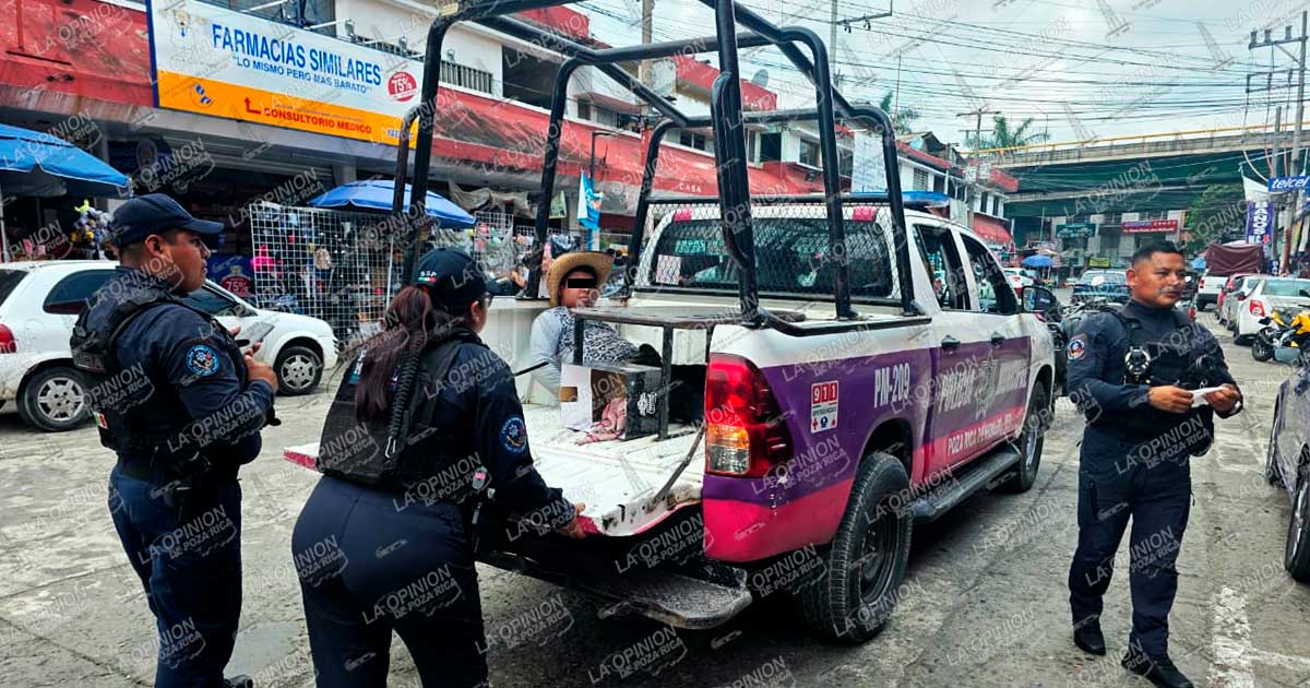 Al sitio arribaron policías municipales, quienes fueron informados por varios comerciantes sobre la conducta agresiva del individuo, de aproximadamente 30 años, por lo que procedieron a su aseguramiento.