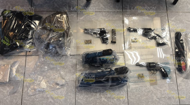 Al revisar la unidad se les encontró en su poder un arma revolver calibre .38 especial con 4 cartuchos útiles, una báscula, un envoltorio con hierba seca con las mismas características de la marihuana de aproximadamente 530 kilogramos, un cuchillo sin marca, 10 bolsas transparentes con polvo blanco con las características de cocaína y dos selladoras de bolsas color azul.