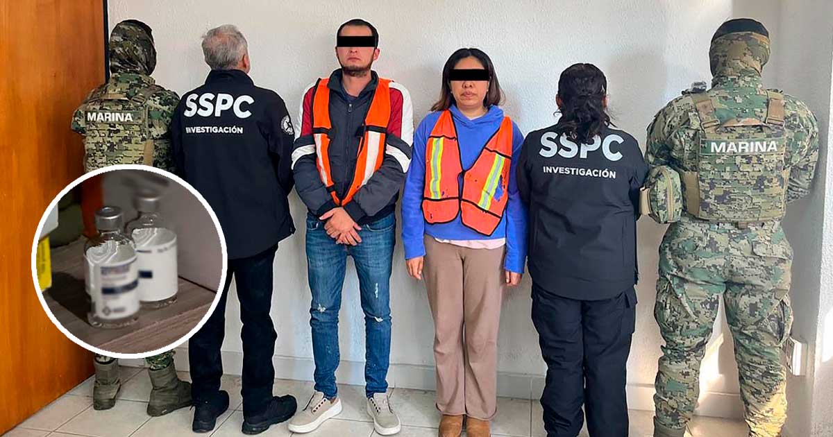 Estado de México.- Elementos de la Secretaría de Marina (Semar), Secretaría de Seguridad y Protección Ciudadana (SSPC) y Fiscalía General de la República (FGR) detuvieron a Rodolfo “N” y Areli “N”, vinculados con la comercialización de medicamentos falsificados, y aseguraron diversas dosis de droga, vacunas apócrifas y material para su distribución.
