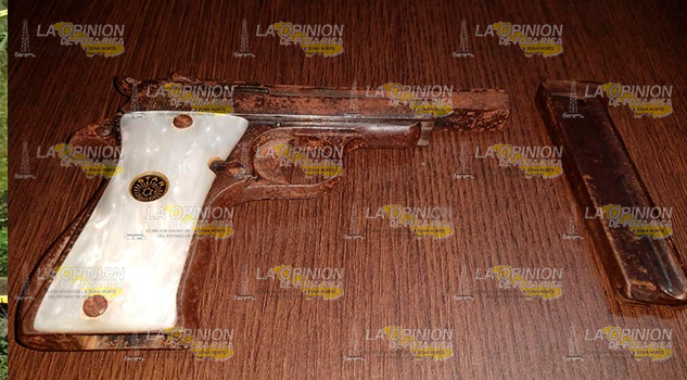 Elementos de la policía municipal detuvieron a una mujer que se encontraba hablando por teléfono y al mismo se tapaba la cara con la bolsa que traía consigo, por lo tanto al percatarse de la presencia de los policías mostró una actitud inusual y sospechosa, por lo que los oficiales se aproximaron ante ella y se identificaron cómo Policías Municipales, en este caso le indicaron que la mujer policía le realizaría una inspección a lo que esta respondió de manera agresiva y empezó a empujar a los oficiales, solicitándole que mostrara el contenido de la bolsa de mano color café que traía en la mano derecha, accediendo y vaciando el contenido y encontraron una bolsa color negro de nylon, la cual contenía en su interior un arma de fuego, motivo por el cual procedieron a asegurar a quien dijo llamarse Silvia Margarita Zelaya Munguía, de 46 años de edad, ocupación labores del hogar, con domicilio en calle Juan José Areola, lote 10 manzana 4, colonia Lizardi de esta ciudad, la cual fue Puesta a disposición de la Fiscalía Federal con sede en Poza Rica para la responsabilidad que le resulte.