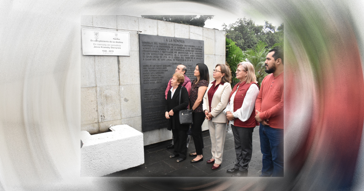 Poza Rica, Ver.- El alcalde Francisco Javier Velázquez Vallejo, develó la placa colocada en el Monumento a Los Caídos, en memoria de Jesús Kramsky Steinpreis, quien fuera el único sobreviviente al accidente aéreo ocurrido el 25 de enero de 1970 en el Cerro del Mesón y que ocasionó la muerte de periodistas, lo anterior en el marco del Quincuagésimo Aniversario de este hecho, y en donde la autoridad municipal estuvo acompañado por la viuda del comunicador, María Luisa López, así como de sus hijos y nietos, además de representantes de medios informativos de la ciudad.