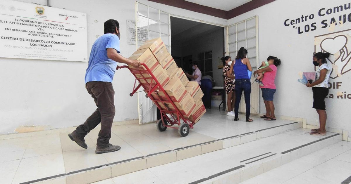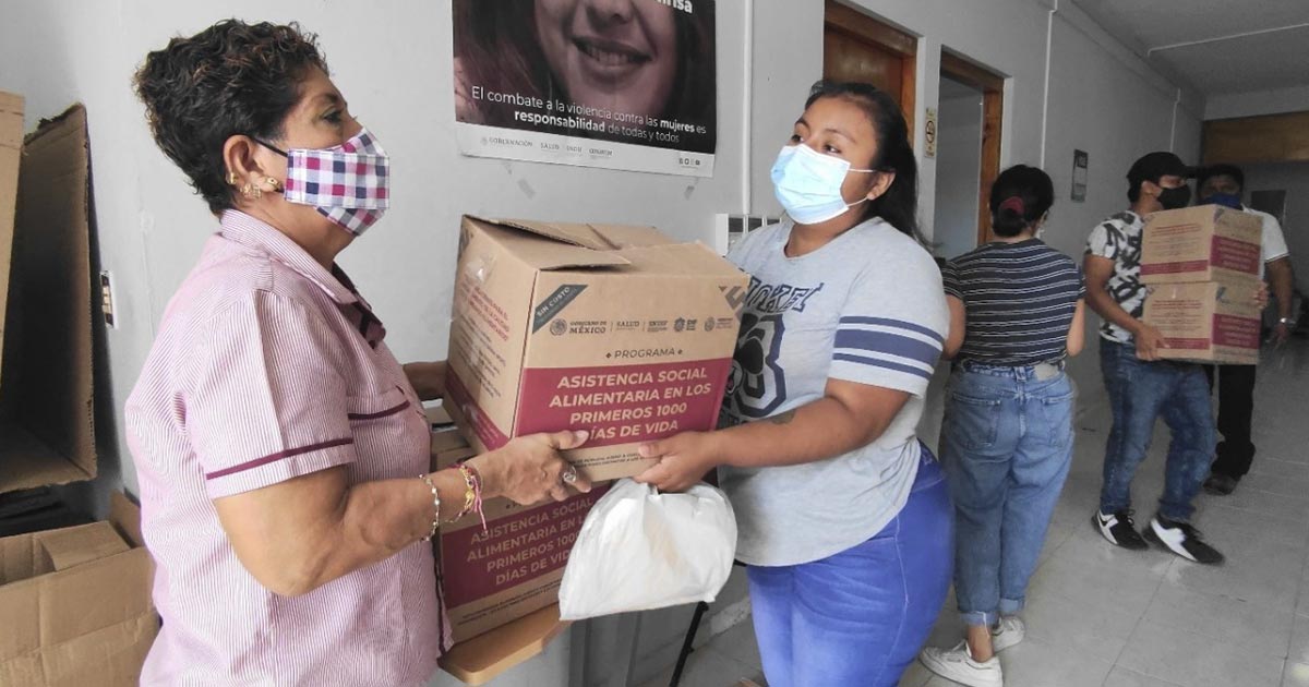 Poza Rica, Ver.- Con el objetivo de apoyar a mujeres embarazadas, mujeres en periodo de lactancia al igual que niñas y niños en sus primeros mil días de vida, el pasado fin de semana personal el Sistema Municipal para el Desarrollo Integral de la Familia (DIF) Poza Rica, que preside la Sra. María de la Luz Straffon de Velázquez, y la Directora de esta Institución Lic. María Magdalena Lara Fuerte, realizaron la entrega de las primeras despensas que se darán de modo mensual a las beneficiadas del programa del Gobierno y DIF Estatal “Asistencia Alimentaria en los primeros 1000 días de vida”.