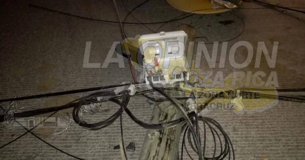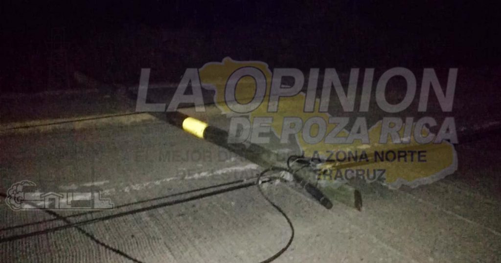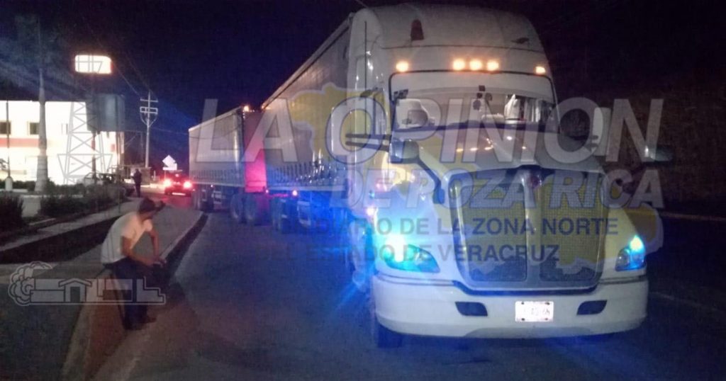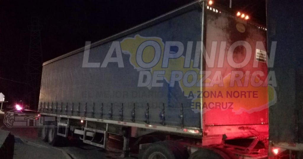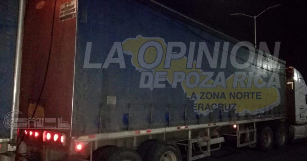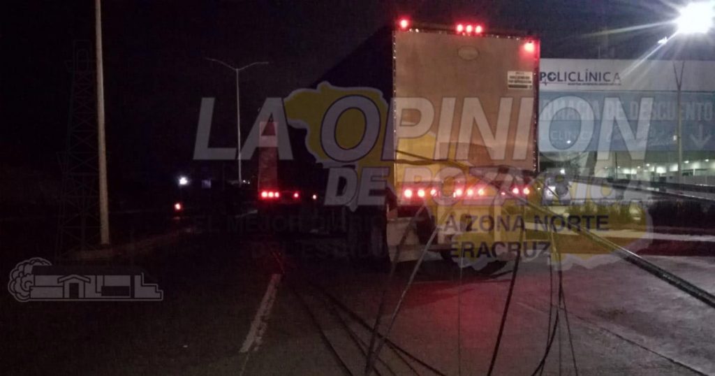 Tuxpan, Ver.- Tráiler doble remolque que transportaba cervezas derribó tres postes de telefonía luego de que su operador intentará dar una vuelta en tu sobre el libramiento de esta ciudad y se atorara con el cableado; por fortuna no hubo víctimas que lamentar