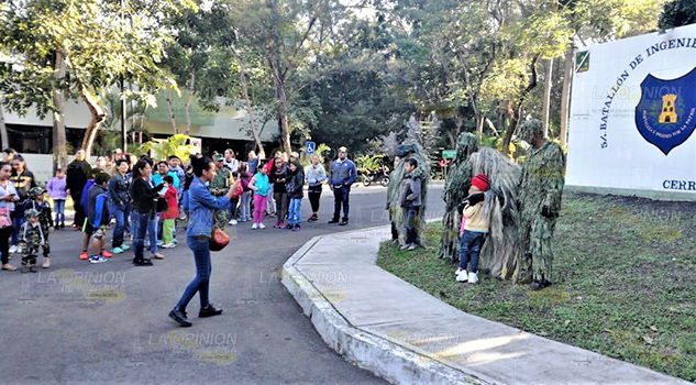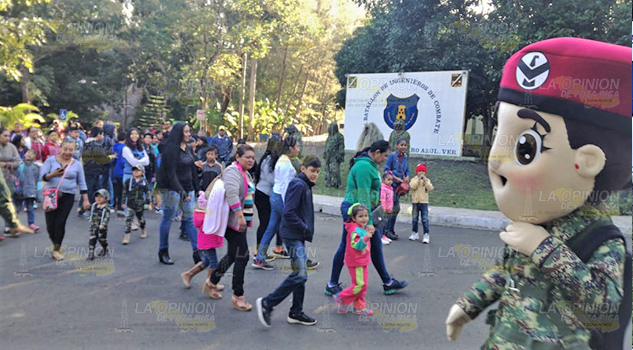 CERRO AZUL, Ver.- A pesar del frío de la mañana, desde temprana hora de este domingo decenas de familias acudieron a las instalaciones del 5º Batallón de Ingenieros de Combate, donde disfrutaron de una serie de actividades recreativas y convivencia con personal militar.