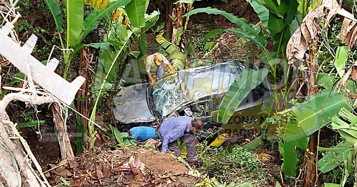 El accidente se registró a eso de las 11:00 horas de este sábado, en donde participó una camioneta Ibiza color gris y una camioneta color rojo, la cual quedo dañada y estaba estacionada a un costado de la cinta asfáltica, mientras que el vehículo de uso familiar se fue al precipicio.