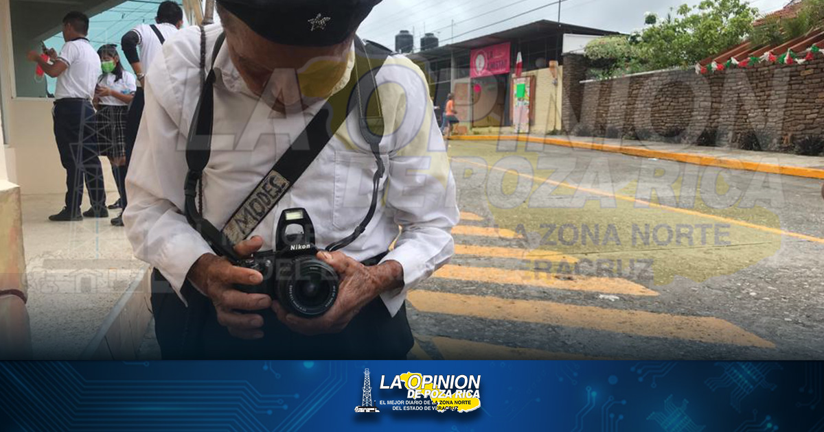 Tihuatlán, Ver.- De 88 años, Modesto Cruz Juárez es un fotógrafo tihuateco que no se pierde los desfiles ni otros actos cívicos, que durante 60 años ha captado en imágenes, las primeras en blanco y negro con cámaras de rollo y ahora una digital.