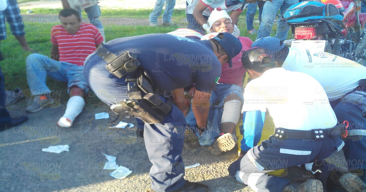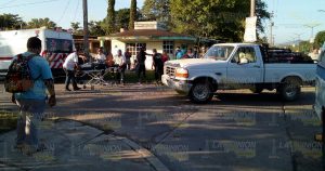Naranjos, Ver.- Dos albañiles que viajaban en una motocicleta resultaron lesionados en la mañana de este miércoles al ser impactados por una camioneta cuando se desplazaban sobre el crucero UE forman la calle Veracruz con el Boulevard de la colonia petrolera.