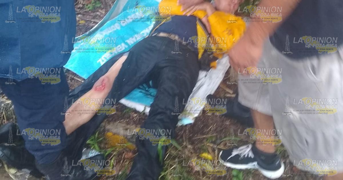 La motocicleta marca Italika FT150 con placas RS- C5P que manejaba Mario Sandoval Rendon de 22 años con domicilio en la colonia centro y el acompañante Alexis Ramos Garcia con domicilio en la Colonia Ferrer quien tambien quedo mal herido, ambos fueron llevados al hospital de esta ciudad.
