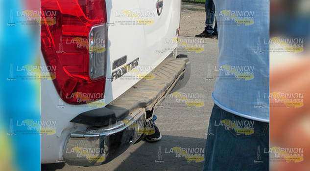 Ocupantes de la camioneta Nissan, tipo Frontier, color blanco, con placas de circulación XX-04-102 del estado, coincidieron en señalar que una camioneta Nissan, tipo estaquitas, de cabina color gris y redilas blancas, fue la culpable de propiciar el accidente, debido a que se atravesó inesperadamente en un retorno del camellón.