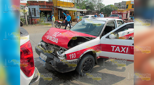 Los daños materiales principales los presenta el taxi con número económico 193, con matrícula 007-XDH del estado, de la ruta La Soledad, el cual terminó con la tapa del cofre levantada, el faro de lado izquierdo roto y la facia sumida.