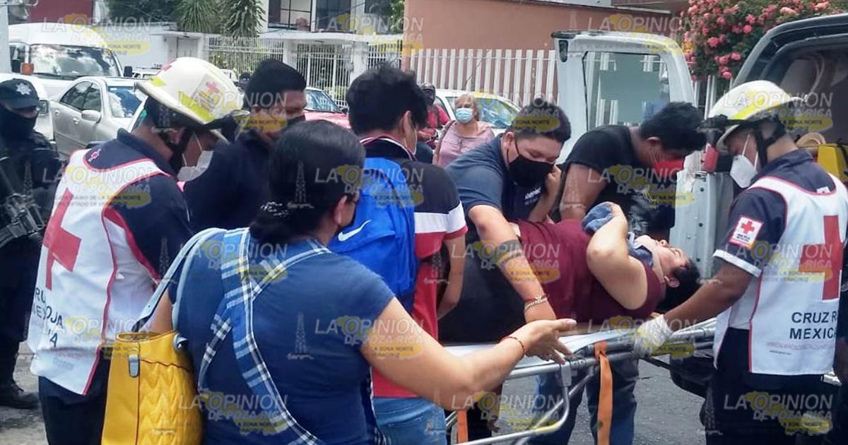 La copiloto o pasajero del taxi resulta con lesiones y es atendida por técnicos en urgencias médicas de la Cruz Roja, para luego ser trasladada al hospital del Ángel.