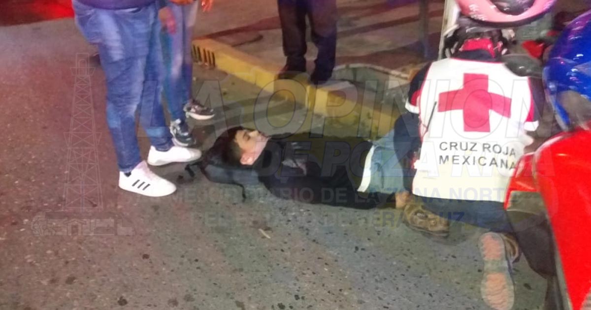 Poza Rica, Ver. – un hombre y una mujer resultaron lesionados luego de que la motocicleta en la que circulaban fuera embestida por una camioneta mandándolos al pavimento.