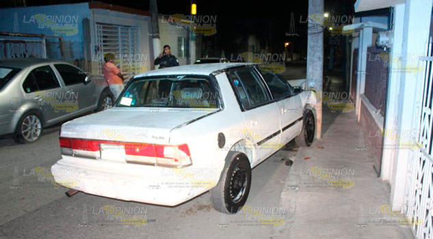 La colisión se registró esta madrugada sobre la calle Juárez casi esquina con 5 de Mayo, de la colonia Manuel Ávila Camacho, donde quedó un automóvil marca Chrysler Spirit de color blanco incrustado contra un poste de concreto.