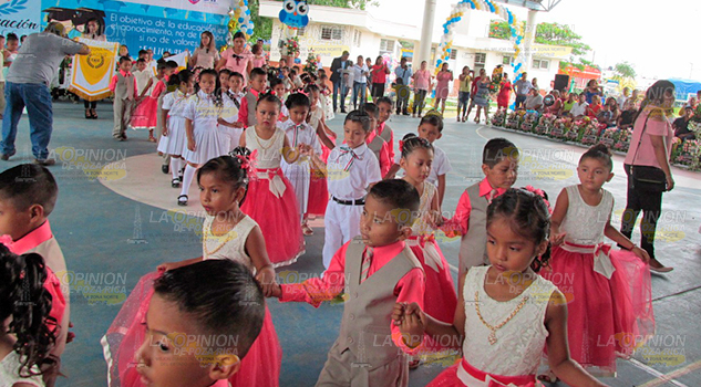 Durante la ceremonia, encabezada por las autoridades municipales, tres pequeños egresados fueron los encargados de entonar el himno nacional, el himno a Veracruz y el Juramento a la bandera.