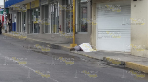 El cuerpo que se encuentra tendido y tapado por una sábana blanca sobre la banqueta, según datos, pertenece a una joven mujer llamada «CHELY» originaria del municipio de Tecolutla.