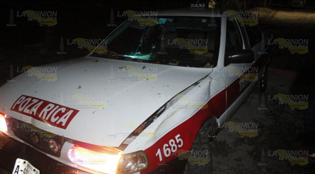De acuerdo a elementos de la Secretaria de Seguridad Pública, el cuerpo bañado en sangre, quedó en el asiento del conductor, al interior del vehículo de alquiler, marcado con el numero 1685, con placas de circulación A-920-XDA, delegación 6 de Poza Rica.