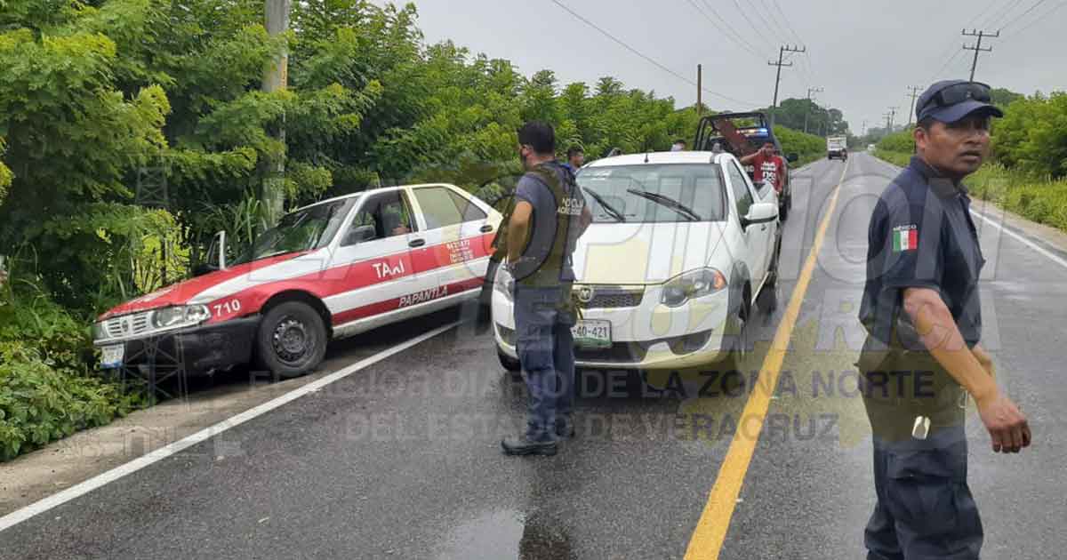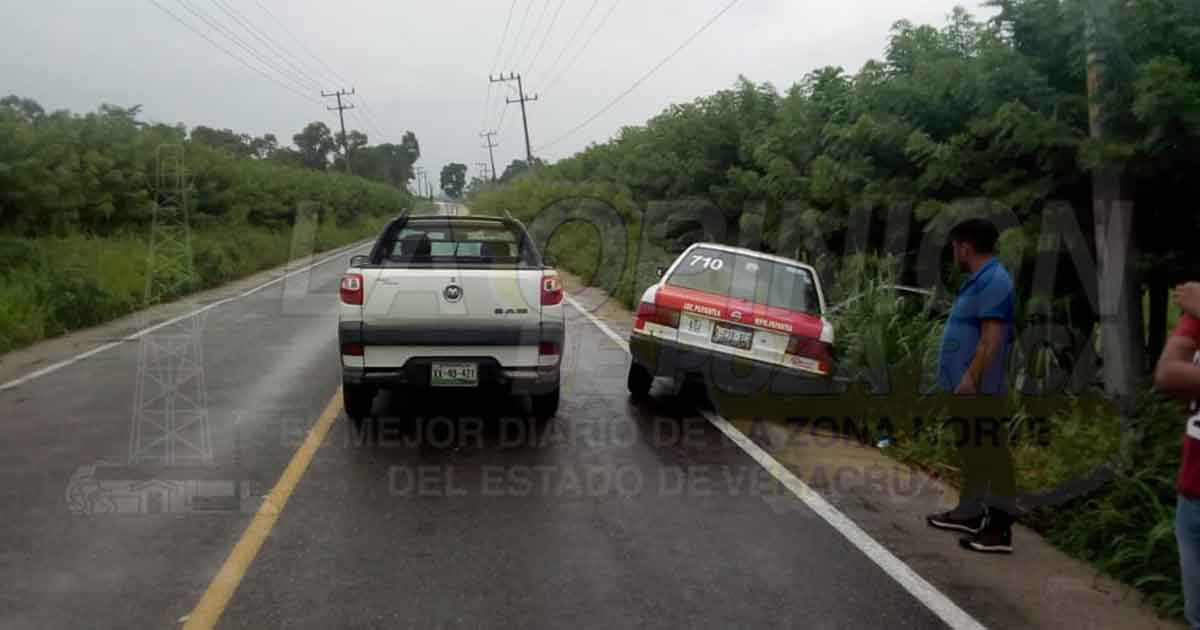 El accidente se registró alrededor de las 18 horas sobre la vía de comunicación antes mencionada, a altura del rancho Las Mercedes, por dónde circulaba el Nissan Tsuru, en la modalidad de taxi, marcado con el número económico 710, con placas A-239-XEA, de la ciudad de Papantla, conducido por Eliacid Martínez García, de 39 años de edad, quien se impactó contra la camioneta RAM identificado con la matrícula XX-40-421, el cual era manipulado por Daniel Santiago Mateo de 25 años.