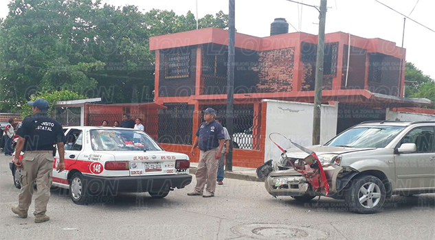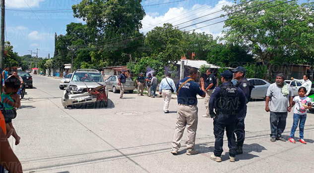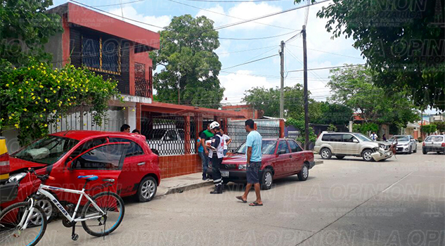 Tres personas, entre ellos una mujer embarazada resultaron lesionados tras registrarse un aparatoso choque en el cruce de las calles 2 de abril esquina con Flores de la Colonia Las Vegas.