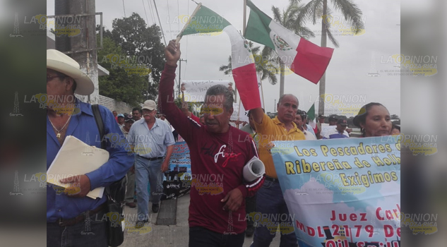 Los pescadores marcharon hacia el puente Tuxpan, para plantarse a un costado del acceso con pancartas y atraer la atención del presidente de la República, Andrés Manuel López Obrador, cuyo arribo estaba previsto para las cinco de la tarde.
