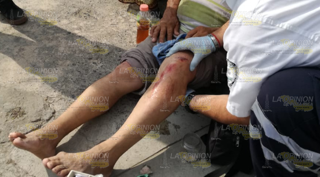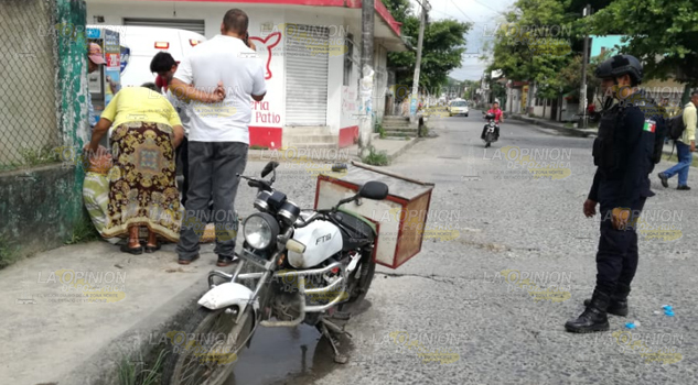 Tuxpan, Ver.- Vendedor de masa que manejaba una motocicleta fue derribado por una camioneta y resultó con diversas contusiones en el cuerpo pero a pesar de eso se negó a ser trasladado a algún nosocomio para su atención médica.