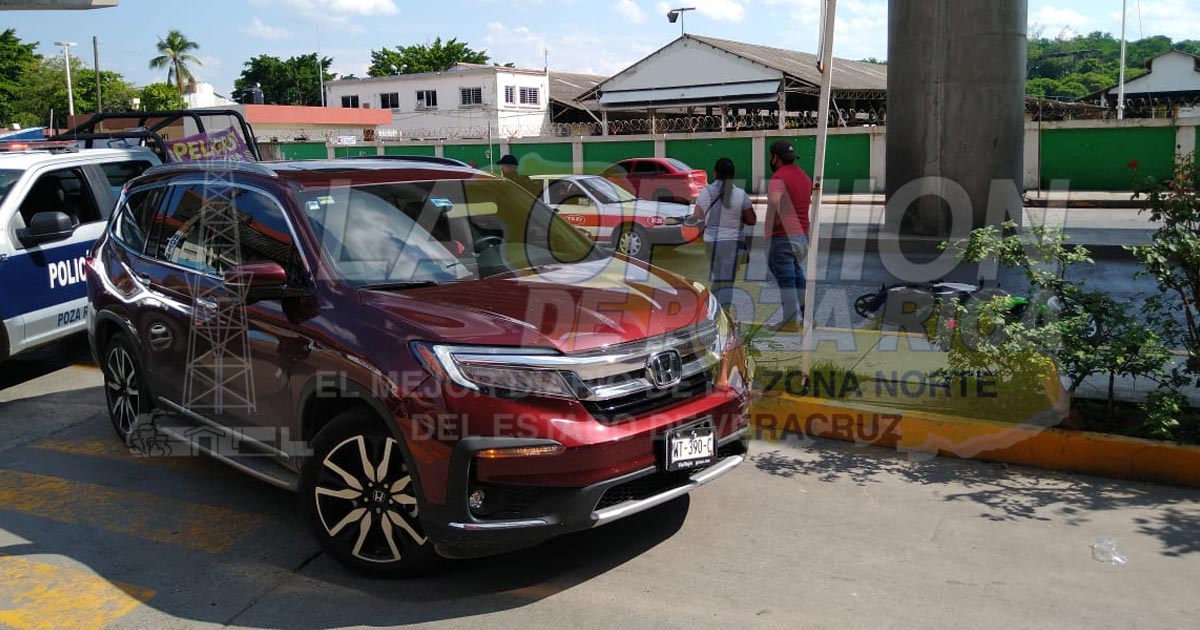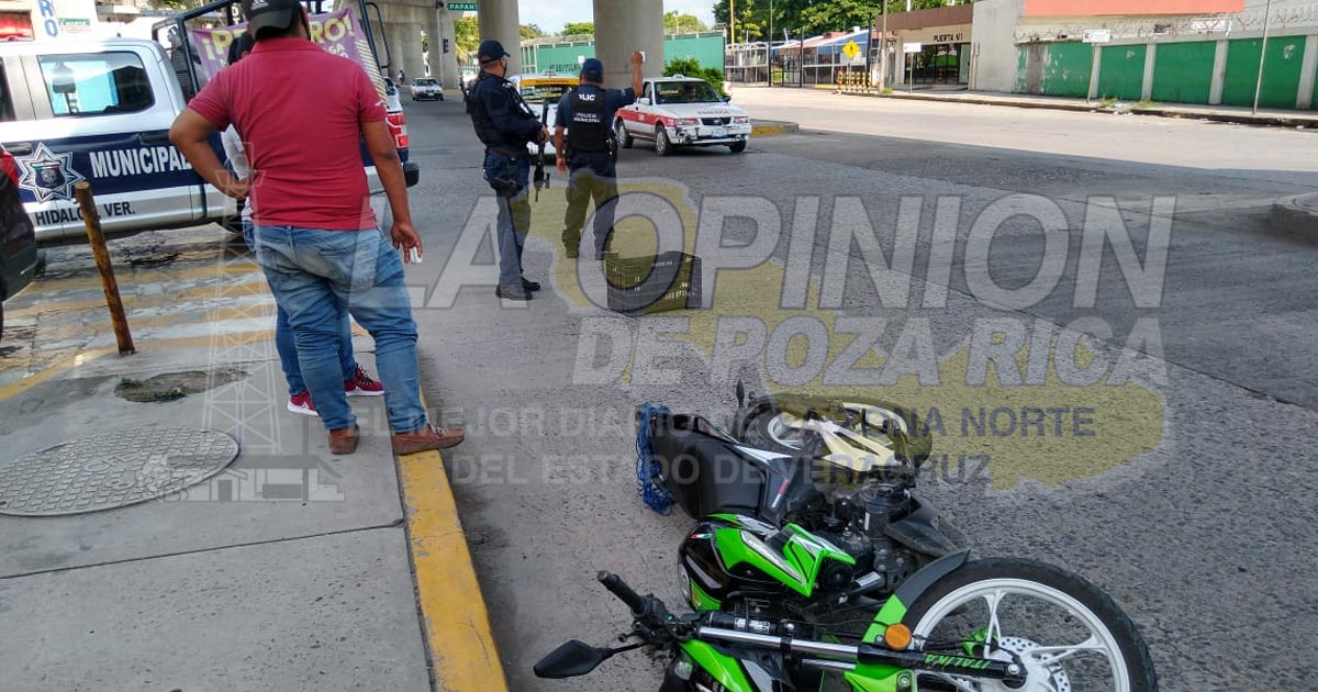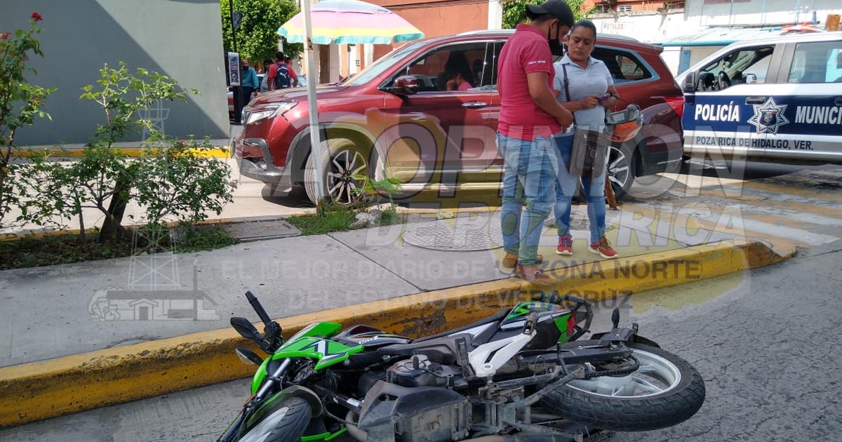 Poza Rica, Ver.- Una pareja que viajaba a bordo de una motocicleta fue embestida por una lujosa camioneta, cuyo conductor presuntamente intentó ganarles el paso y termino por proyectarles contra el pavimento.