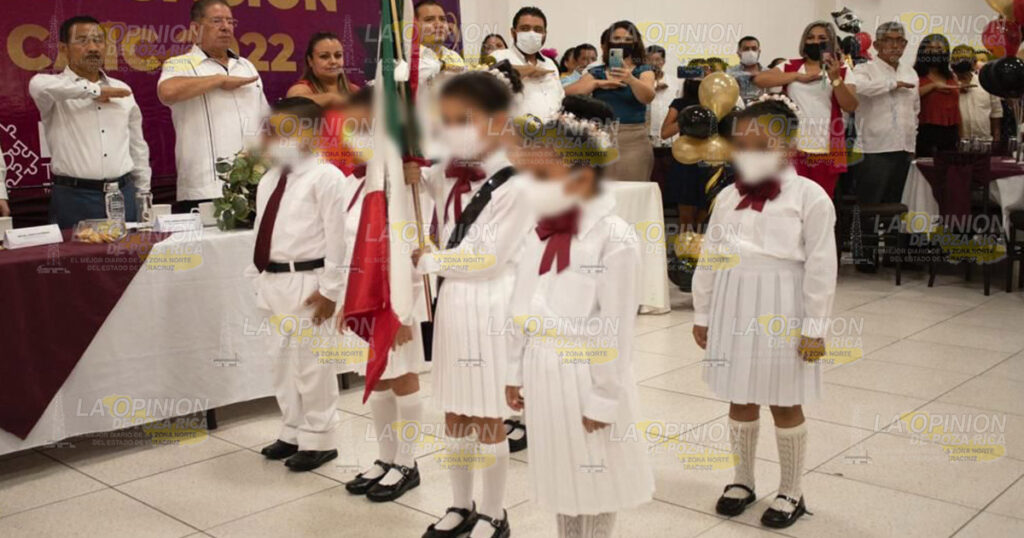 En la ceremonia estuvo acompañado por la regidora Maryanela Monroy Flores, comisionada en Promoción y Defensa de los Derechos Humanos de la Niñez y la Infancia; el Mtro. Onésimo Pérez Ramos, delegado Regional de la SEV en Tuxpan; y Lic. Jorge Arturo García Robles, director de Educación.