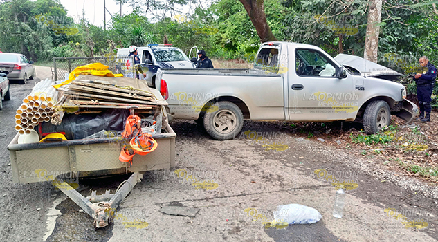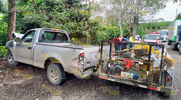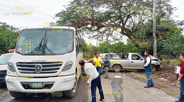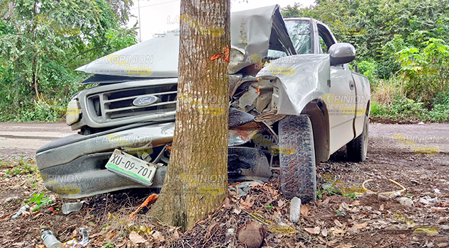 PAPANTLA, VER.- La mañana de este martes, elementos de la Policía Municipal y de la Cruz Roja, se movilizaron hasta la localidad Emiliano Zapata, donde una camioneta se impactó contra un árbol, tras intentar evitar colisionar con un autobús que transportaba personal de PEMEX y se encontraba mal estacionado al salir de una peligrosa curva.